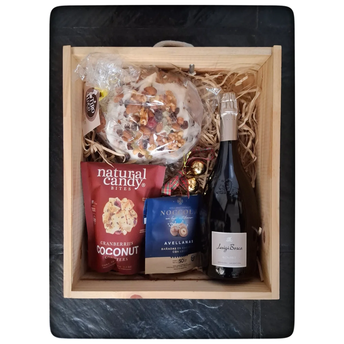 Un regalo sofisticado que combina espumante, pan dulce artesanal y delicatessen seleccionadas.